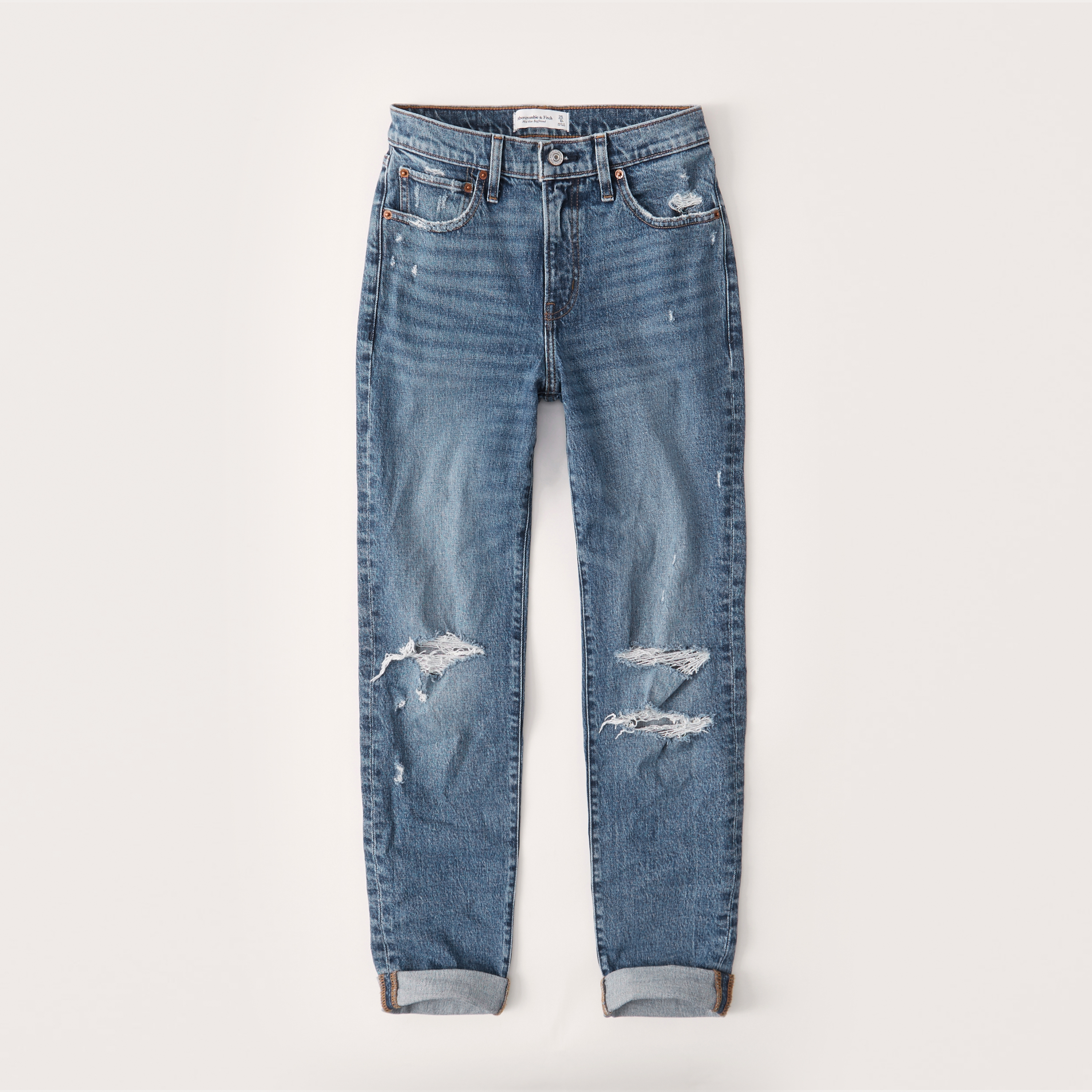 Women S Ripped Mid Rise Boyfriend Jeans Women S Clearance Abercrombie Com