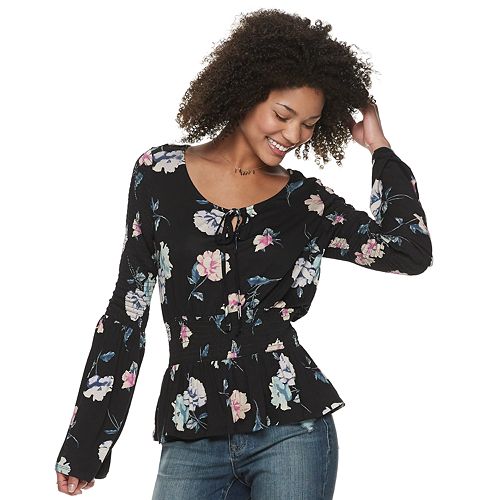Juniors American Rag Smocked Sleeve Waist Peasant Top