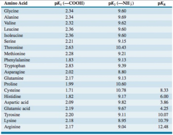 What Pka Values Does Mcat Follow For Amino Acids I Believe This