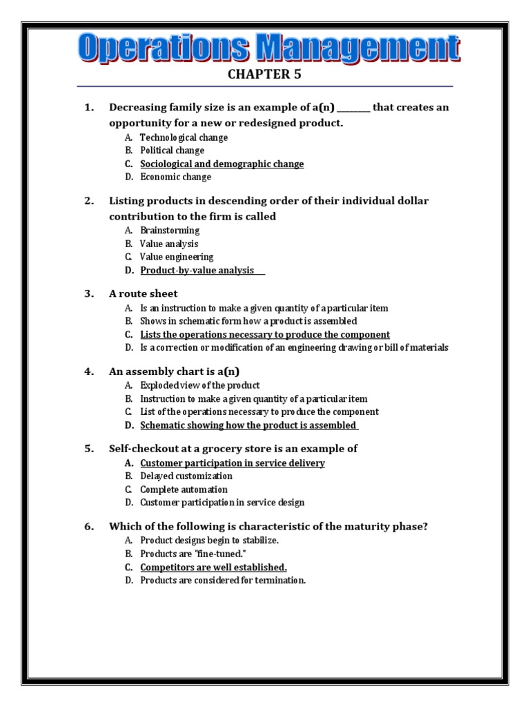 Operations Management Final Exam Automation Quality Business