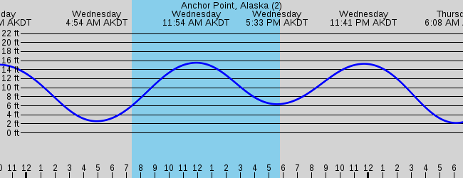 The tide chart above shows the height and times of high tide and low tide for anchor point cook inlet alaska. If you prefer the standard tide table layout click here saturday august 1 2020. Click here to see anchor point s tide chart for the week.