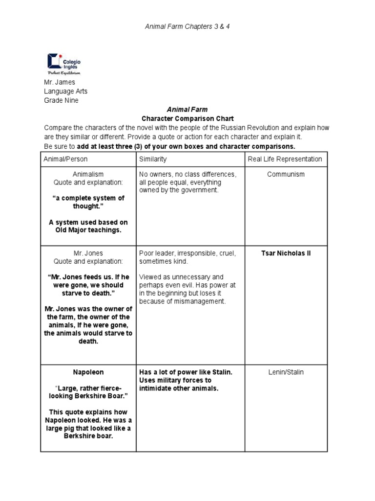 Animal Farm Character Comparison Chart Pdf Cherry Creek