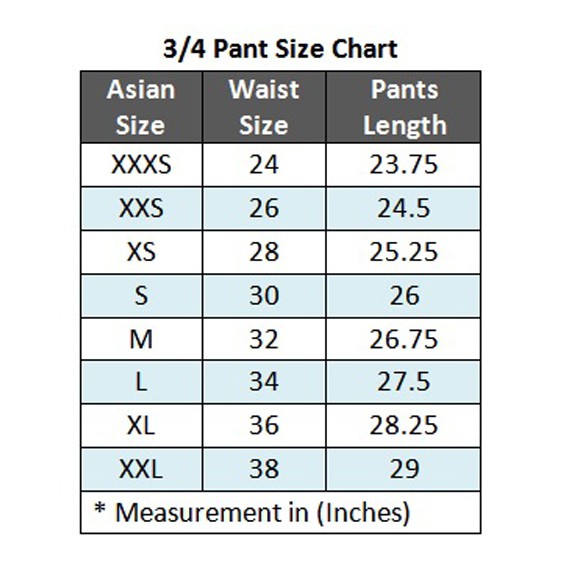Asian Pants Size Chart To Us