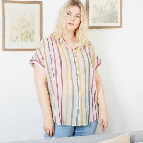 Women S Plus Size Striped Short Sleeve Collared Blouse Ava Viv