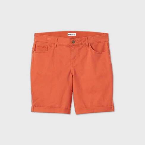 Women S Plus Size Mid Rise Bermuda Jean Shorts Ava Viv Orange