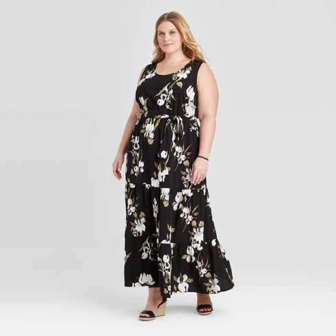 Women S Plus Size Floral Print Sleeveless Tiered Maxi Dress Ava Viv Black Target