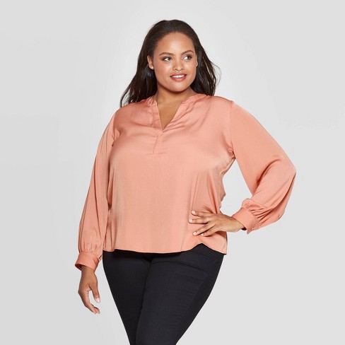 Women S Plus Size Long Sleeve V Neck Popover Top Ava Viv Peach 4x Target