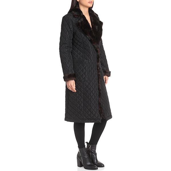 Women S Badgley Mischka Faux Mink Trim Quilted Coat