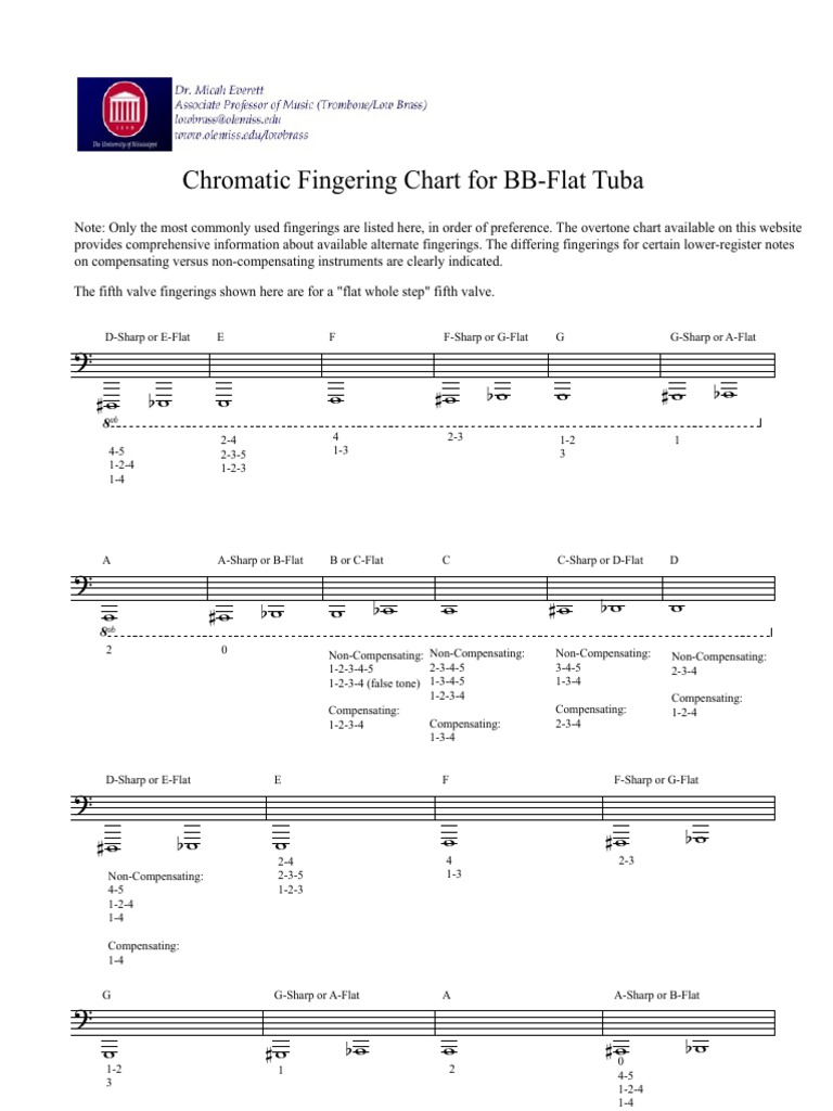 Https Www Olemiss Edu Lowbrass Studio Fingeringcharts Cctubafingering Pdf