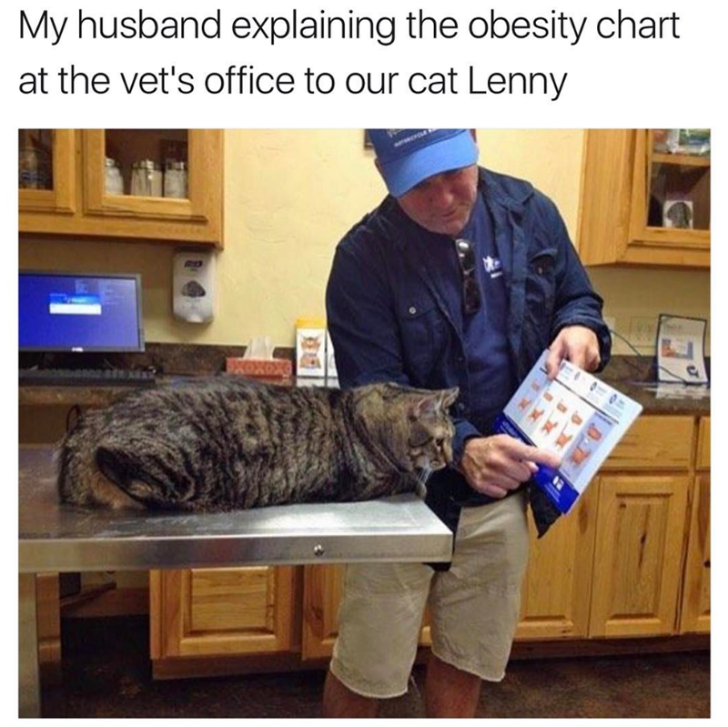 My Husband Explaining The Obesity Chart At The Vet S Office To Our Fat Cat Lenny Lenny Meme On Me Me
