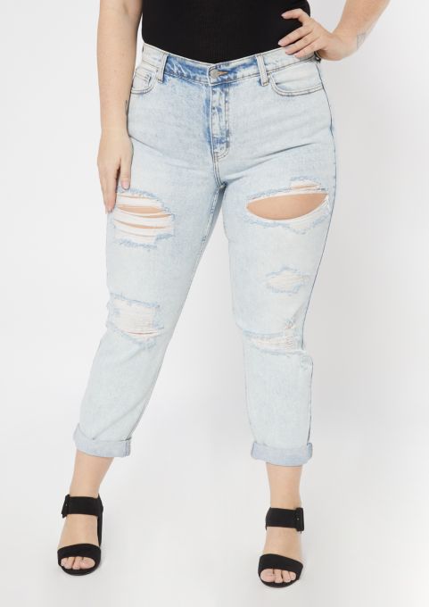 Plus Cello Light Wash Distressed Rolled Mom Jeans Plus Mom Jeans