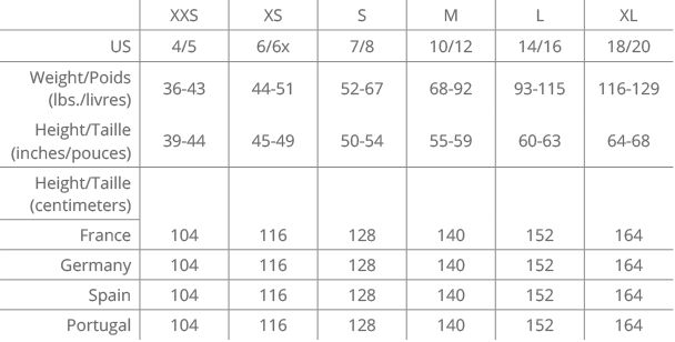 Kids Columbia Clothing Size Chart