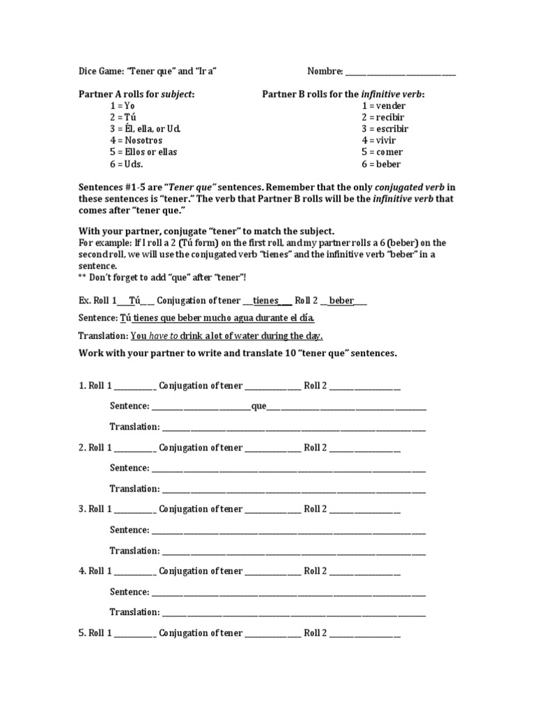 Spn Dice Game Tener Que And Ir A Pdf Philology Semantics
