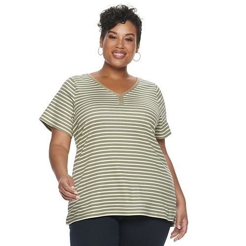 Plus Size Croft Barrow Print Embellished V Neck Top
