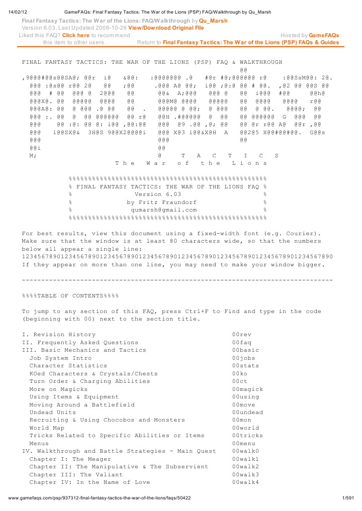 Gamefaqs Final Fantasy Tactics The War Of The Lions Psp