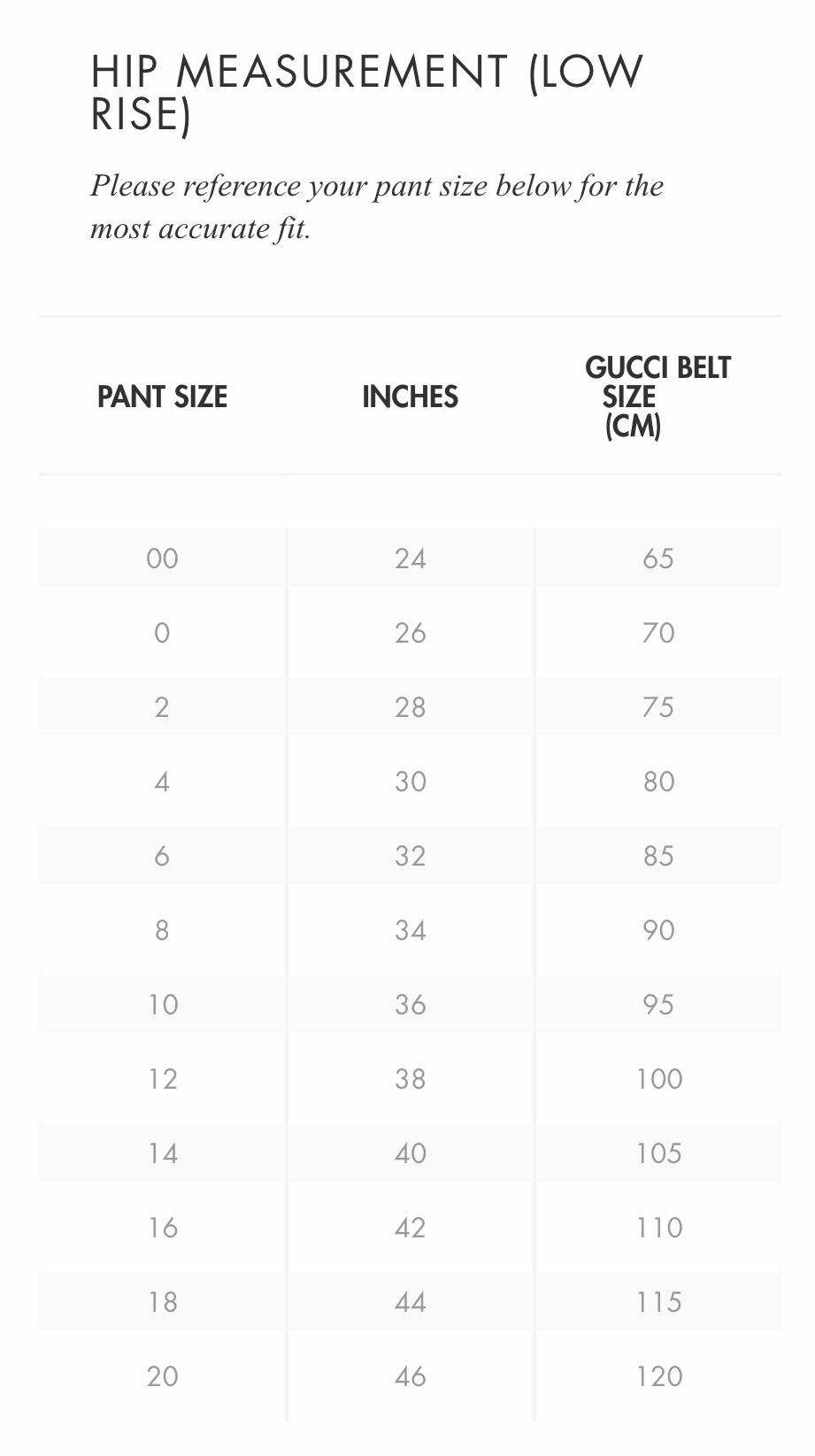 Gucci Belt Size Chart Conversion Trinity
