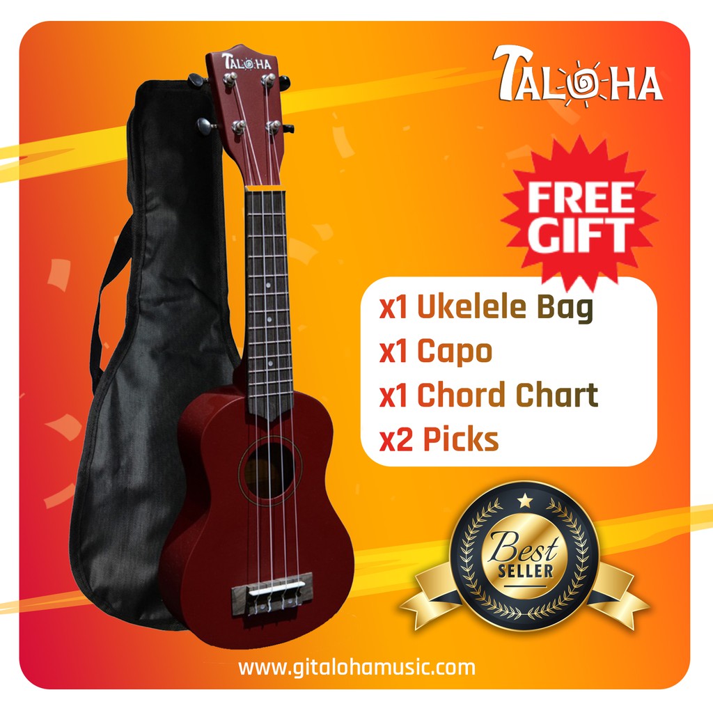 Taloha Soprano Ukulele Free Bag Capo Chord Chart 2 Picks
