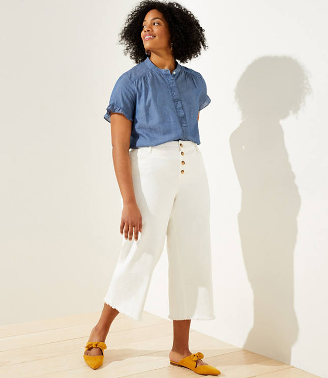 Loft Plus High Waist Wide Leg Crop Jeans In Popcorn