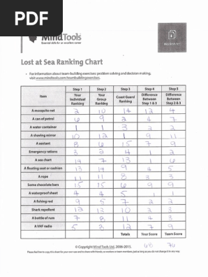 Teambuildingexercisesworksheet Lost At Sea Ranking Chart For