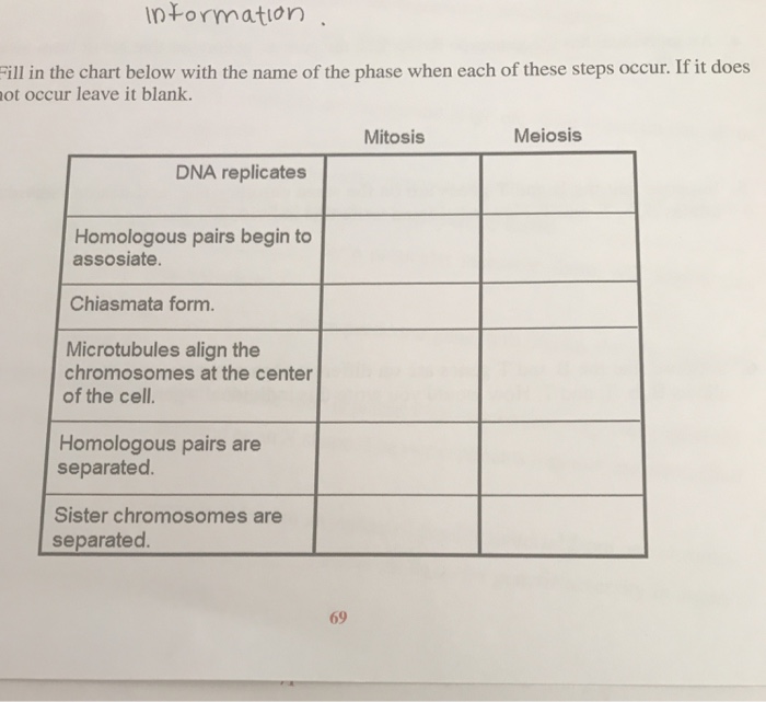 Compare Mitosis And Meiosis By Filling In The Chart Below Meiosis