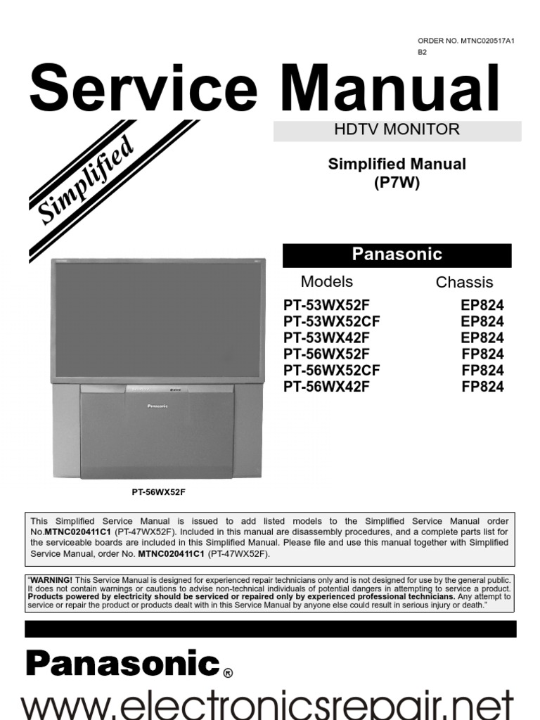 Panasonic Pt 53wx42f Service Repair Manual Ep824 Pdf Document