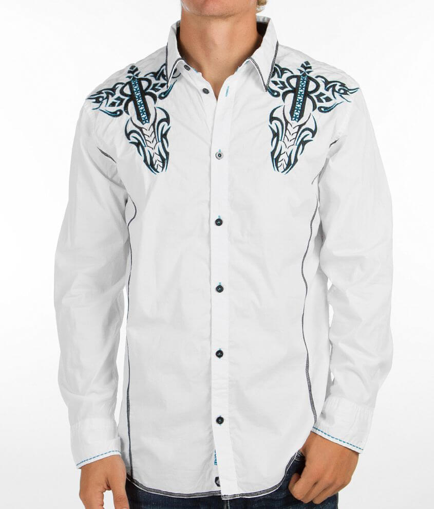 Roar Mens Embroidered Button Front Shirt Long Sleeve Eternally