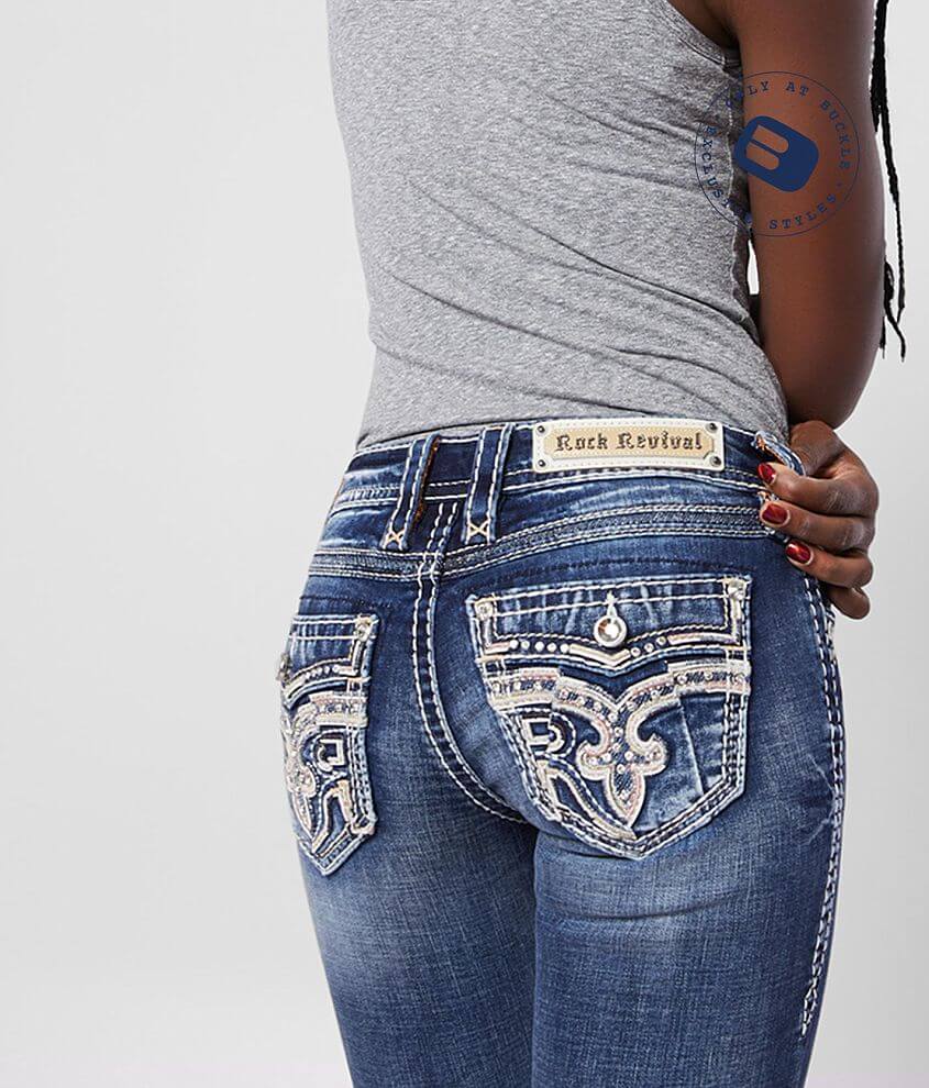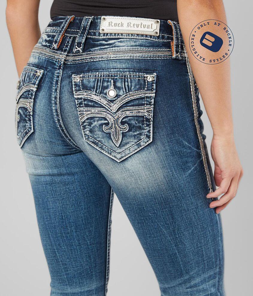Women S Rock Revival Jeans Low Rise Rhinestone Straight Stretch