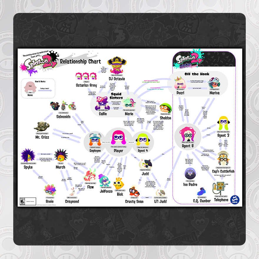 The official splatoon 2 relationship chart implies that agent 4 does not watch tv which may explain why they stood in awkward silence when marie brought up the subject of her fame. Get ready to start slingin ink in the action shooting game splatoon 2 for the nintendo switch console. The splatoon us tumblr posted a hilarious relationship chart of literally every single character in the franchise.