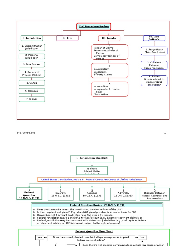 Civil Procedure Subject Matter Jurisdiction Flow Chart Civil