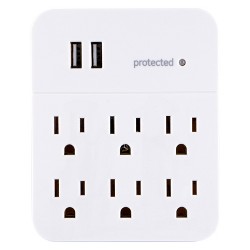 Surge Protector 6 Outlets 2 Usb Charging Ports 6 Ft Cord 1080