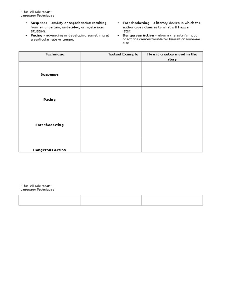 The Tell Tale Heart Vocabulary Chart By Deanna Shook Tpt