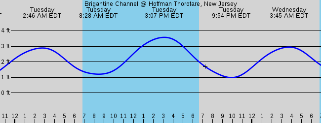 7 day brigantine tides forecast these tide times are estimates based on the nearest port brigantine channel hoffman thorofare new jersey and may differ significantly depending on distance please note the tide times given are not suitable for navigational purposes. The tide chart above shows the height and times of high tide and low tide for brigantine channel at hoffman thorofare new jersey. Pick the month for the tides july 2020 august 2020 september 2020 october 2020 november 2020 december 2020 january 2021 february 2021 march 2021 april 2021 may 2021 june 2021 first day for tides and.