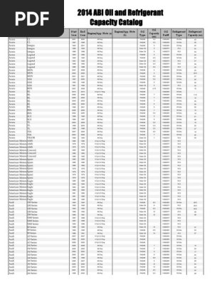 Automotive Ac Freon Capacity Chart