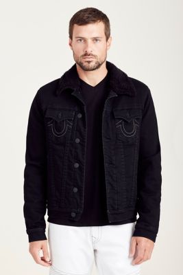 Sherpa Lined Black Denim Mens Jacket True Religion
