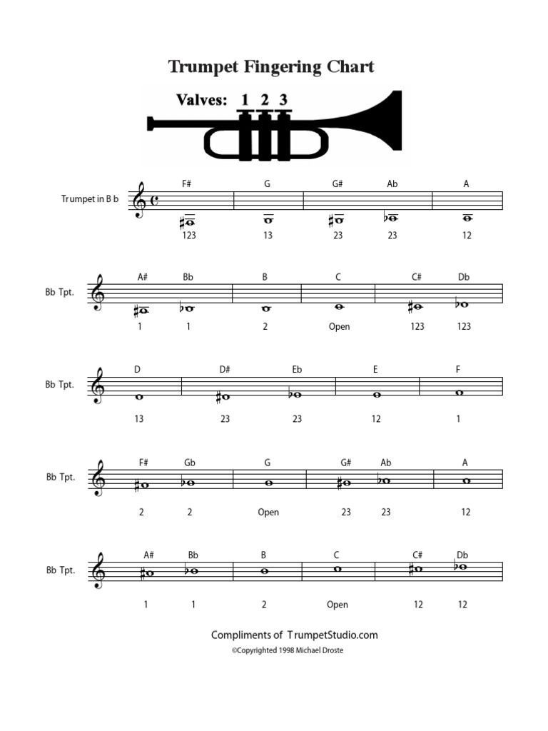 Trumpet fingering chart pdf. Bb trumpet cornet fingering chart 123 eb 23 23 db c db 123 b cb b cb 13. Hit any of the bullet points to jump to a section. Jazz musicians must be able to play above their abilities in several cases.